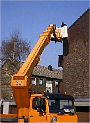 oben nach unten, von Leitern, Gerüsten oder Hubwagen aus.